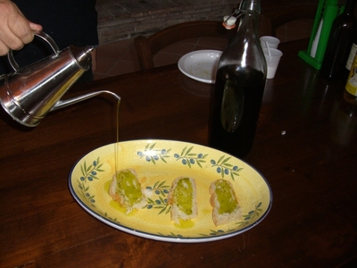 Mulinoには、必ず暖炉があって、パンを焼き、生にんにくで軽くにおいをつけて、ふんだんにオリーブオイルを着け、味を競います。 もちろんみな自分のうちのが、一番と言います。