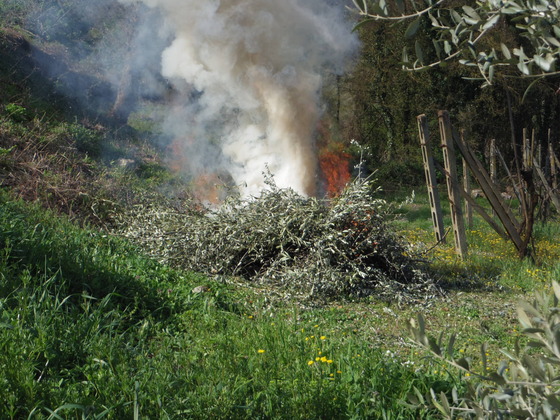 そして、切ったオリーブを焼くのです。そうすると、煙が出るのです。