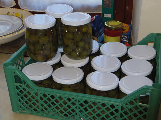そして秋の風情の一つが早摘みで取って塩つけにしたオリーブです。今年は、取る時期を早めて固めのときに取ったので、比較的固くできました。