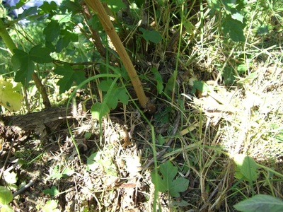 葡萄の木の根には、同じところからいばらと何かしらない雑草にしては、固い木がぶどうと同じ根本に生えます。それを、小さいうちに切るのですが、毎回同じところに出るのです。その切った切り口に少しの薬を付けると根の下まで枯れる農薬が日本にはありますが、使いません。