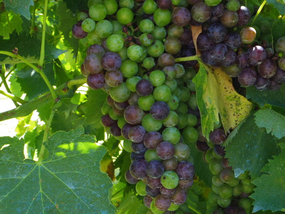 乾燥に強いものと言われていますが、ぶどうは、本当に強いです。これは、ちょうど色付きはじめのものですが、これは、チリエッジョロです。ほかのものも、盛り返してきました。気温は、40度越えですので、陽にあたると皮膚は痛いのです。日本人は、紫外線に強い!「とんでもないですよ!」この地中海の日差しは。