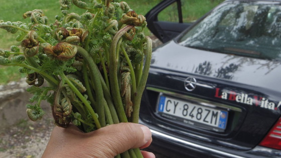 どう食べる?ですか?簡単です。暖炉に灰があります。流し中にこのわらびを入れて灰をかけて、熱湯を注いで、朝まで放っておくだけです。朝起きたら、知覧から送ってきた宗田節を削って、おしたしが良いです。ここのわらび,このへんで、私しか食べないのですが、日本のそれより、ねばりを感じます。イタリアの人は、毒と言って食べません。たしかに毒のようですが。ところで友人から醤油をもらいました。すごいですね!空気の入らない醤油!日本の技術!