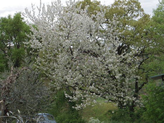 何といってもこの時期は、この二台がないと、過ごせません。ランボルギーニのトラックターは、買えませんでしたが、愛着の出てきたトラットーレと、草刈りのためのホンダです。この二台で敷地内を、見ています。一番遅い桜が満開になりました。この桜は、リンゴの木の横にあります。