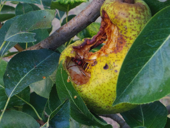 しっかりはちに食べられています。まだ、人間には、少し早いのです。はちは熱中症にならないで、どんなに暑くとも、元気です。今年も何度か刺されました。でも彼らの撃退するのは、朝がよいのです。ハチは、寝坊なのです。ですから、早く起きて、寝ているうちに、火で羽を燃してしまうのです。どこにでもいると思うのですが、意地悪そうな奴!イタリアでは、決まってハチ退治が好きです。事情を話すと喜んでやってきて、処理して「はちなんか、羽さえなければ、ただの蟻!」なんて言って、帰ってゆきます。何しろ、うちは、広いので、一年に何度か、はちの巣退治に、追われますが、その前に意地悪そうな奴を探しておいておくのです。今では、何人かいます。
