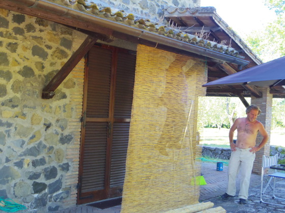 そして、普通の家には、エアコンが普及していないので、工夫で、よしずを買ってきていて、毎年夏になると、こんな風に陽をよけます。あまり多くの家にはありませんが、私には、これはけっこう快適です。