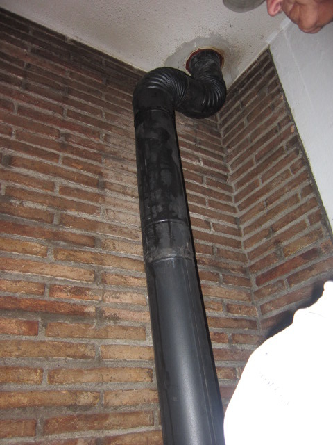 家の中の暖房は、暖炉とストーブですが、ともに一年に二回くらいは、煙突の掃除をします。これがけっこう厄介なもので、屋根の上に登って行う方法と、下から行う方法があります。Elioとの協同作業だったので、下から行いました。