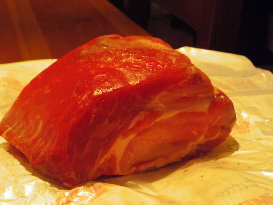 毎日、スーパーに行きます。私のスーパーの選定基準は、簡単です。混んでないところ。バドワイザーのあるところです。人に会いたくないと思いつつも、今日も、車のシート屋さん、工具の治し屋さんらに会いました。しばらく肉食ってないと思いながら、肉のコーナーに立っていると「プロント。プレーゴ(準備できたよ!どうぞ!」と言われれば、買わないわけにはいかないので、Capocolloという豚の頸椎のところを、これくらいと言って買いました。
