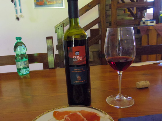 そして、もちろんParmaの生ハムで、これを飲みました。実に美しい色、まさにルビー色で、ぶどうジュースです。