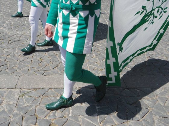 そして、13世紀の服装で、先導した400人くらいの人の行列が血染めの布に先導します。