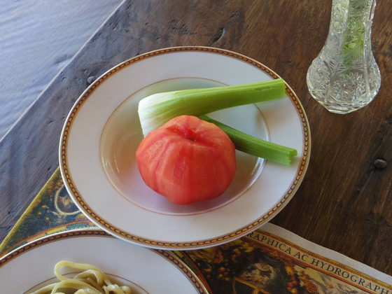 そして、野菜は、トマトとセロリ。セロリが泥付きでうまい。