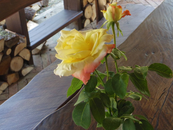 そして一人でも手抜きしないで、朝採った、ばらを置いて!