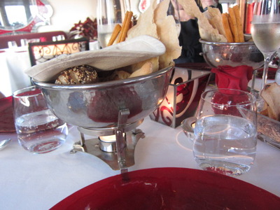 今日は、アペリテイーボを、フロントの続きのサラで飲んで、上に上がりました。Vissani以外は、男子はジェケット着用が義務です。この暑いのに、女性はヌーダに近いのに、何故男は?とマネージャーに聞いたら、「なるほど!」とは、いうものの、ジャっケットを脱ごうと思っている客に、着ることを進めていました。画像はImagoで、グリシーニを温かく食べさせるために、下に火を使っている画像です。