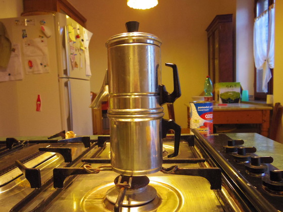 通常、カフェナポレターナと言っていますが、正確にはCaffe Alla Napoletanaと言います。ドリップ式のコーヒー沸かしで、通常使われているものに比べて手間が少しかかりますが、どうしてか、マイルドになるのです。信じなれないくらいにマイルドになるのです。もともとイタリアのコーヒーは、世界一と信じていますが、このナポリのコーヒーは、絶品になるものです。