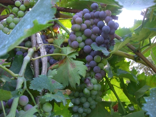 ぶどう?そうですね!果物の王様ですから!今年は、夏を感じない日が多かったので、ぶどうの糖度を心配していましたが、やっと色づきはじめました。画像のぶどうは、サンジョベーゼですね!