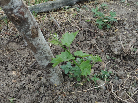 斜面になっているぶどうの畑の端で燃したので、昨年11月に、90本ほど植えたサンジョベーゼの苗がどうなっているか?見たら、順調に育っていました。水が足らない気がしますが。