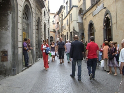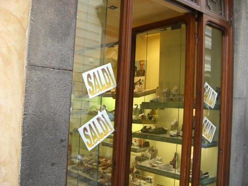 しばらくOrvietoの町中に行っていませんでしたが、今は、夏のSaldi(バーゲン)の時期なのです。日本からみるとあまりにもユーロがあがってまともに買い物などできないというむきもありますが、多くのイタリア人はこぞってこの時期をねらって買い物をします。 60%Offや50%Offでしかも外人には、Taxfree制度があるので、60%Offのものを買うと、70%Offくらいで買えるということなのでしょう!
