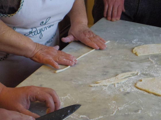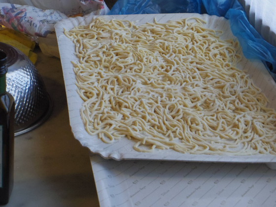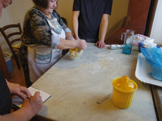 今日は、二人の青年コックさんが来ていて、ウンブリケッリを学びたいというので、Valinda おばさんに来てもらって、教えてもらいました。ウンブリケッリは、ウンブリア州のPasta です。